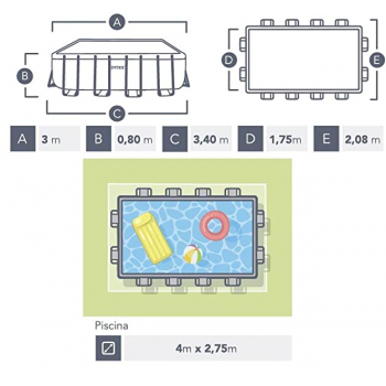 Schwimmbad rechteckiges Intex 300x175 cm oberirdisch Farbe Grau 26784
