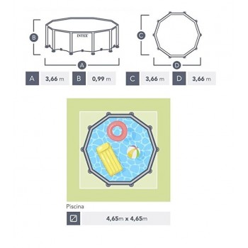 Schwimmbad oberirdisches rundes Intex Prism Frame Ø 366 cm farbe Grau 26716NP