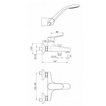 copy of Nobili Wand-Einhand-Wannenbatterie mit Handbrause Serie Hera H547110CR