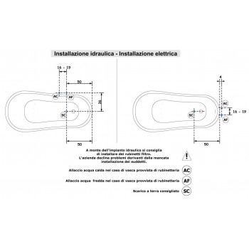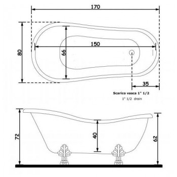 Vasca da bagno stondata realizzata in vetroresina e completa di colonna di scarico, staffe di fissaggio e piedi cromati