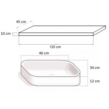 Badezimmerregal 120 cm Kamel Farbe 10 cm dick mit Aufsatzwaschtisch