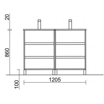 Schrankabmessungen: B 120,5 x T 46 x H 86 cm