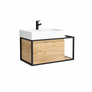 Badezimmer Badmöbel 80 cm mit mattschwarz lackiertem Aluminiumgestell und Waschtisch
