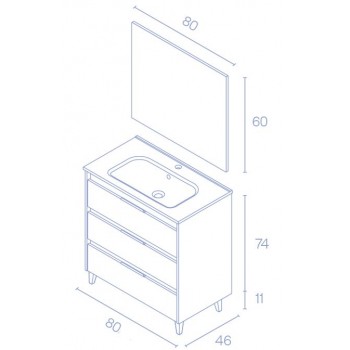 Abmessungen Badmöbel : B 80 x T 46 x H 74 cm