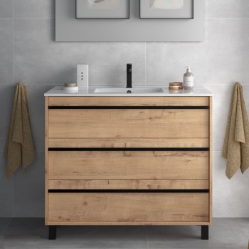 Boden Badmöbel 100 cm Nevada aus Eiche ostippo Holz mit Porzellan Waschtisch