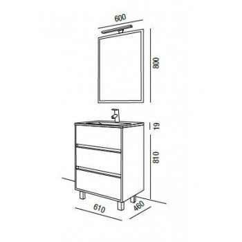 Schrankabmessungen: L 610 x P 460 x H 810 mm