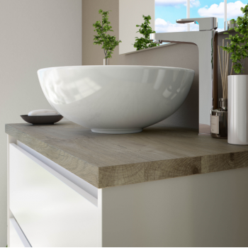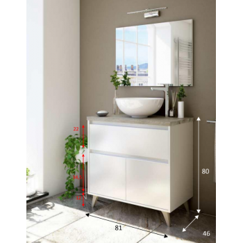 Badezimmerschrank auf dem boden 80 cm glänzend weiß und Eiche mit Waschtisch