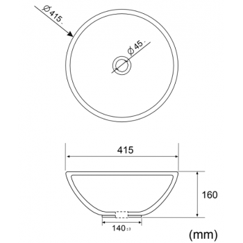 Abmessungen des Waschbeckens: L 41,5 x T 41,5 x H 16 cm (Schalentiefe 16 cm)