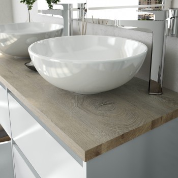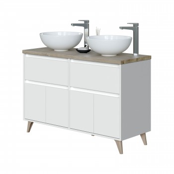 Boden Badezimmerschrank 120 cm glänzend weiß und Eiche mit Doppel Waschtisch