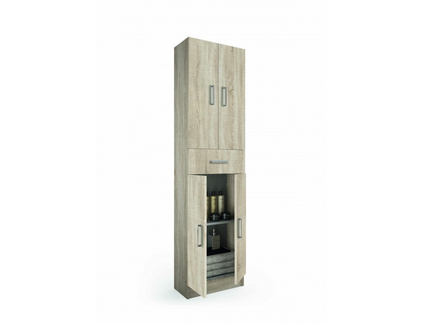 Standsäulenschrank mit 4 Türen, 1 Schublade und Griffen und 5 Inneneinlegeböden