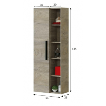 Hängende Badezimmersäule Eiche mit einer Tür und 7 Ablagen
