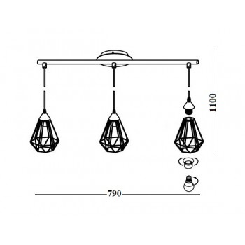 Vintage-Pendelleuchte Eglo aus schwarzem Metall mit drei Lichtpunkten 220-240 V IP20