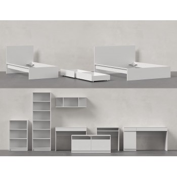 - Es kann mit allen anderen Möbeln der Helsinki-Serie kombiniert werden: 2-türiger Kleiderschrank, Nachttisch, 3-Schubladen-Kommode, 4-Schubladen-Kommode, 2-türiger Unterschrank, TV-Ständer mit Schubladen, Schreibtisch, Regal, 3-Fach-Bücherregal, 5-Fach-Bücherregal, Schuhregal.