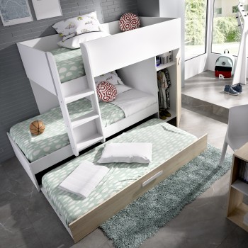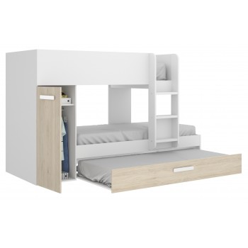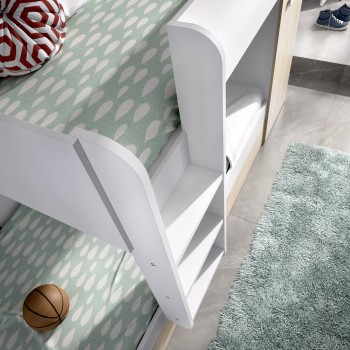 Etagenbett Crystal für zwei Kinder Mattweiß und natürlich mit Kleiderschrank