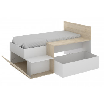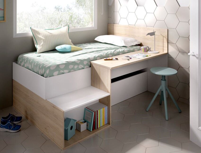 - Kompakt und ideal für kleine Räume, da es Klappe, Stauraum, Schreibtisch und Bett in einem ist.