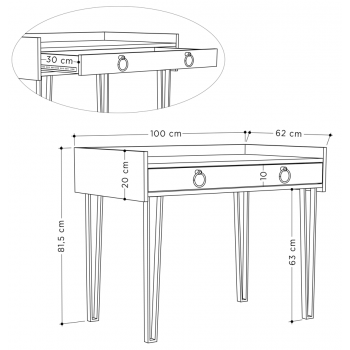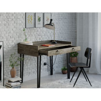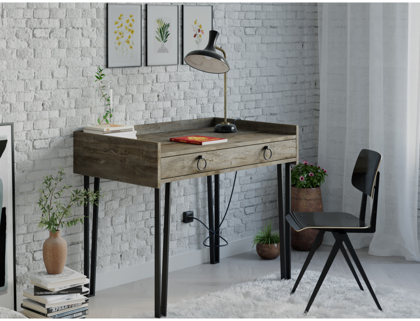 Schreibtisch 100x81,5H Tulip Farbe Dunkel Kaffee mit einer Schublade
