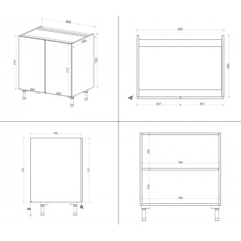 • 2 Türen aus 18 mm dicken Spanplatten der Klasse E1, mit niedrigem Formaldehydgehalt. Kanten 4-seitig mit hitze- und wasserbeständigem Kleber verleimt.