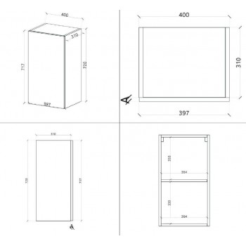 Küchenoberschrank 40x33xH72 cm aus Holz Grau mit einer Tür