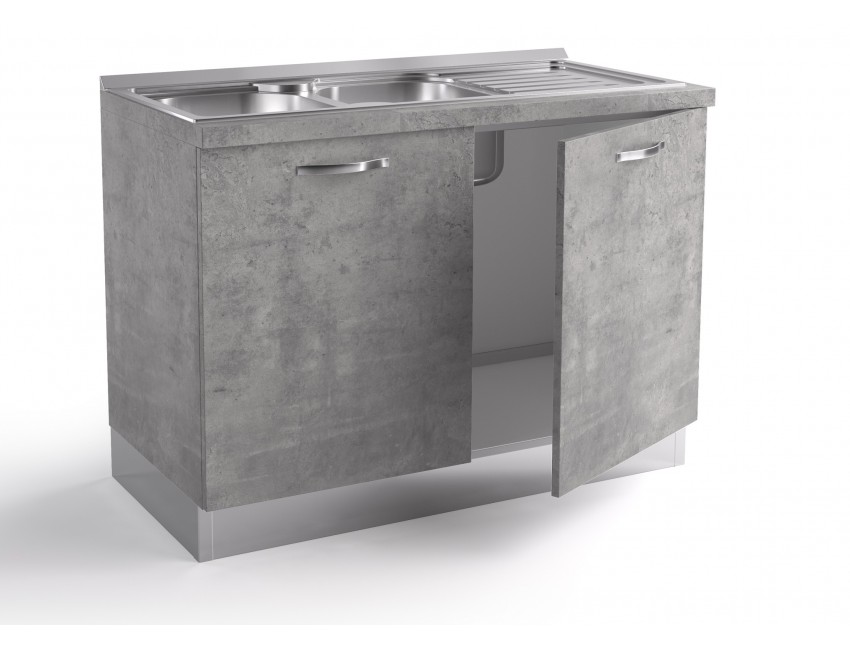 Spülenunterschrank 120x60xH84 cm aus Holz Grau mit zwei Türen