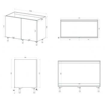• 2 Türen aus 18 mm dicken Spanplatten der Klasse E1, mit niedrigem Formaldehydgehalt. Kanten 4-seitig mit hitze- und wasserbeständigem Kleber verleimt.