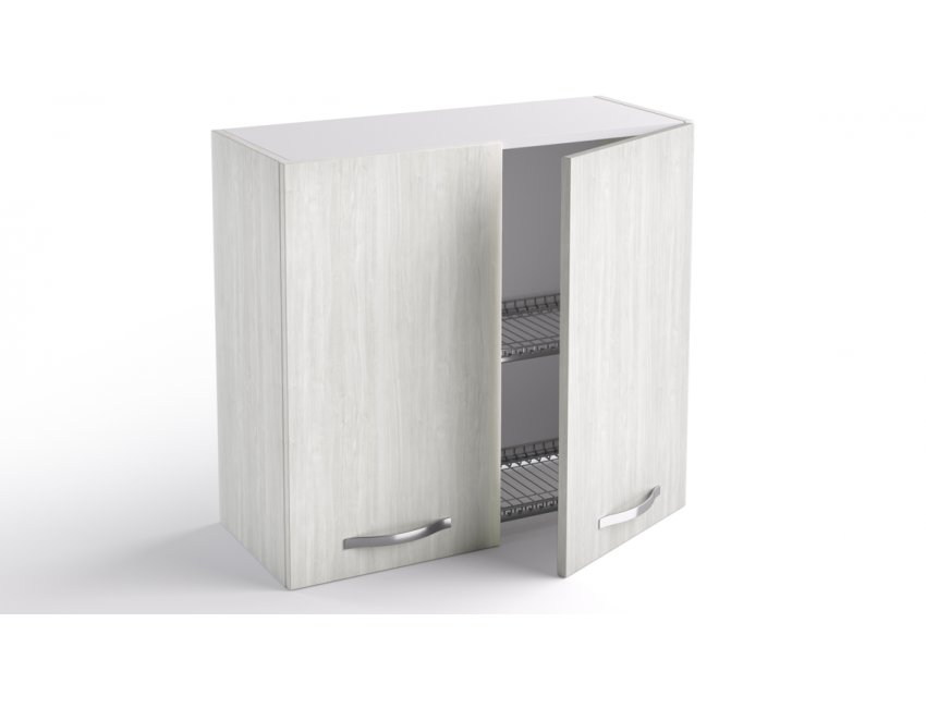 Küchenoberschrank Geschirrabtropfer 80x33xH72 cm aus Holz Weiß Alaska mit zwei Türen