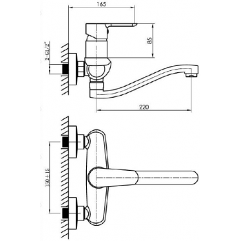 Spültisch-Wandmischer Asia aus verchromtem Messing