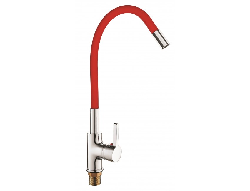 Spültischmischer aus verchromtem Messing mit hohem Auslauf aus rot Silikon