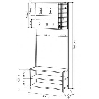 - Ausgestattet mit fünf Kleiderbügeln und drei Einlegeböden