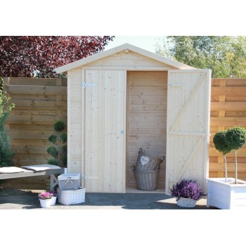 Casetta ripostiglio per attrezzi da giardino quadrata caratterizzata da un aspetto decisamente piacevole e interamente realizzata in legno di abete grezzo non trattato, spessore 18 mm. Il legno di abete è noto per la sua grande capacità di trattenere calore, oltre che per il suo caratteristico colore chiaro e la sua duttibilità.