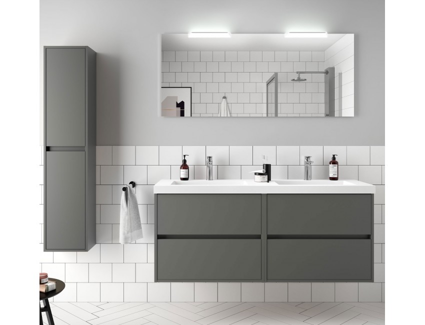 Badezimmer Badmöbel 140 cm aus Mattgrau Holz mit mineralguss waschtisch