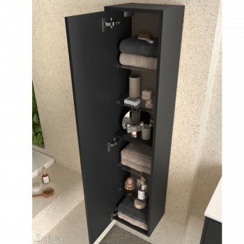 2) Hängende Badsäule aus Holz, Mattschwarz farbe, mit 1 Tür mit langsamer Schließung und 4 innenliegenden Glasböden