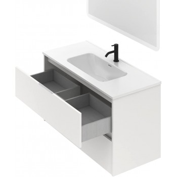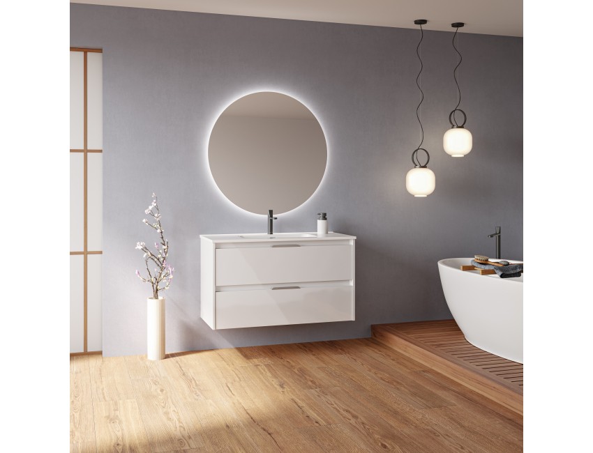Erneuern Sie das Aussehen Ihres Badezimmers mit dem Badezimmerschrank Minnesota. Das Produkt besteht aus einem Einbauwaschtisch und einem Schrank mit 2 Schubladen mit Soft-Close. Minimalistisch und entschlossen in seinen Linien. Der rechteckige Spiegel und die LED-Lampe sind ebenfalls erhältlich.