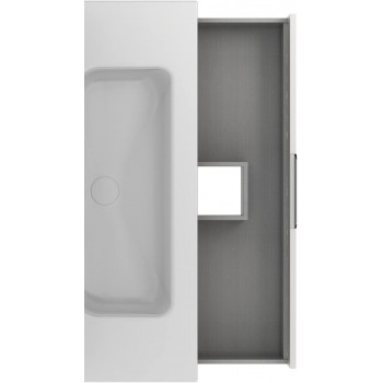 1) Hänge Badezimmerschrank mit einer Struktur aus 16 mm starken Melaminplatten. Das Produkt besteht aus 2 Schubladen mit Metallschienen mit sanftem Einzug und vollständiger Zugänglichkeit im Inneren der Schublade. Die Griffe sind aus Metall in mattschwarzer Ausführung und in den oberen Teil der Schubladenfront integriert. Halterungen für die Wandmontage sind INBEGRIFFEN. Das Innere der Schubladen ist in einer grauen Textur gefertigt.