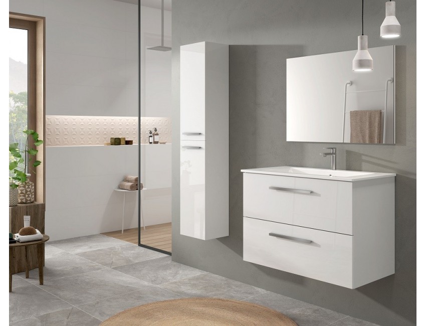 Hängeschränke 80 cm glänzend weiß lackiert mit spiegel