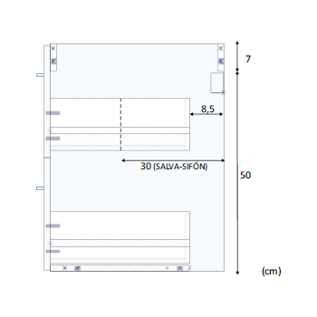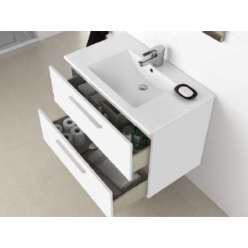 1) Hängeschränke mit 2 Schubladen, verdeckte Kufen mit progressiver Schließung durch das Soft-Close-System und Griffe aus eloxiertem Aluminium mit Glanzeffekt. Beinhaltet Halterungen für die Wandmontage.