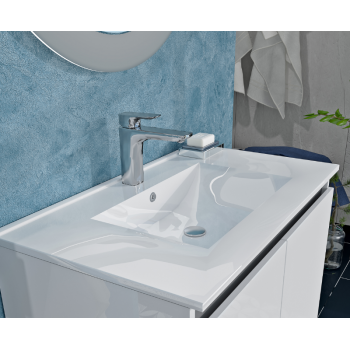 Badezimmer Badmöbel 80 cm Moon aus glänzend weiß Holz mit Keramik Waschtisch