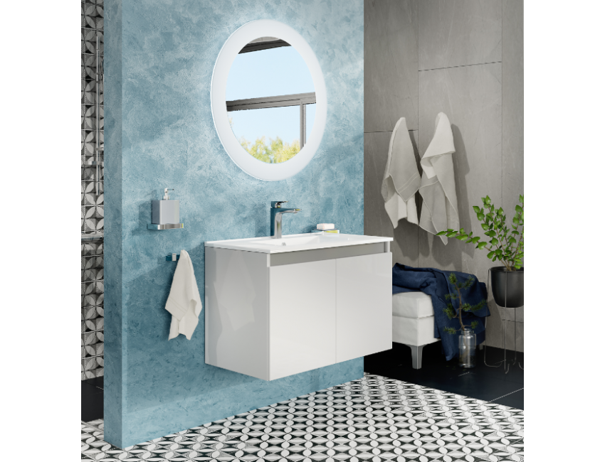 Badezimmer Badmöbel 80 cm Moon aus glänzend weiß Holz mit zwei Türen