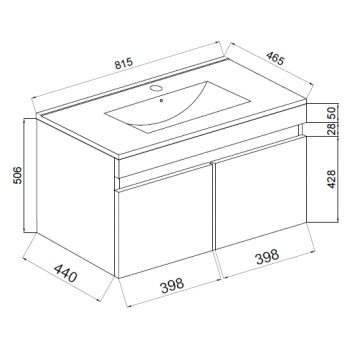 Schrankabmessungen: B 81 x T 47 x H 53 cm