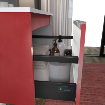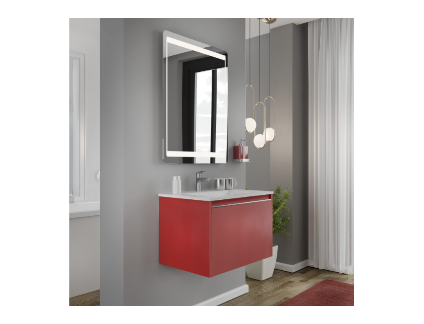 1) Moderner Badezimmerschrank aus Holz, Farbe Kaiserrot, mit 1 Schublade mit langsamer Schließung und ABS-Kanten