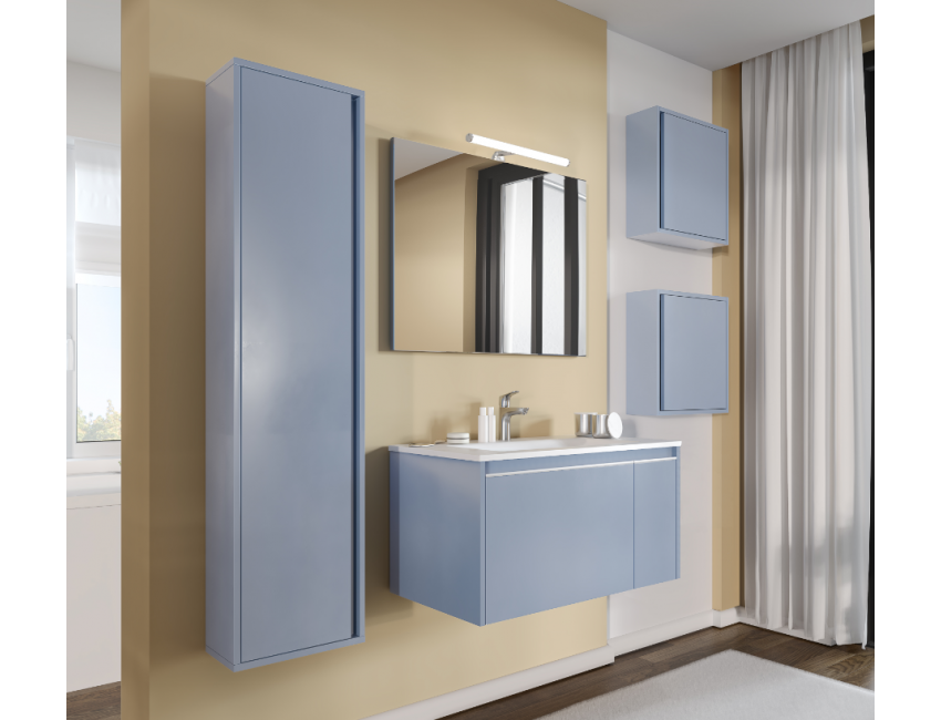 Badezimmer Badmöbel 80 cm Sky aus Pastellblau Holz mit Waschtisch