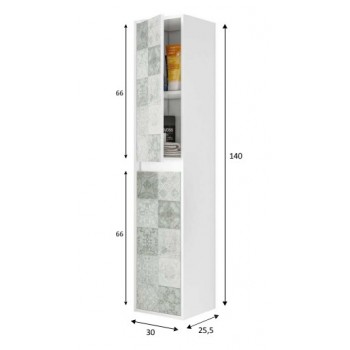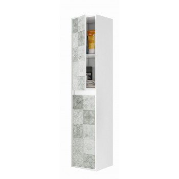 2) Moderne hängende Badsäule aus Holz, glänzend weiß und Mosaik, mit zwei Türen und 4 Innenablagen.
