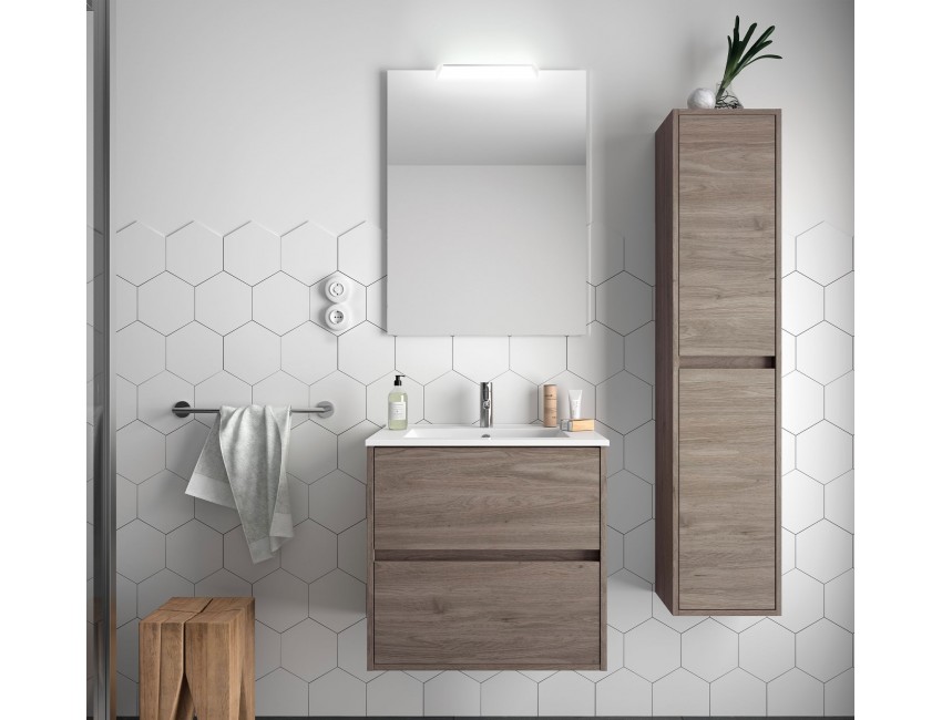 Badezimmer Badmöbel 60 cm aus Eiche eternity Holz mit Porzellan Waschtisch