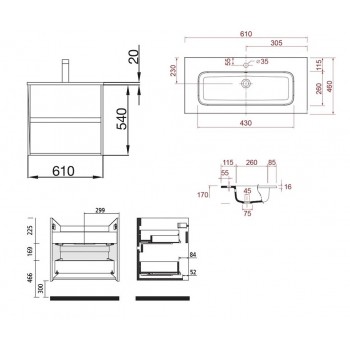 Waschtischabmessungen: B 61 x T 46 x H 1,9 cm (Badewannentiefe : 17cm)