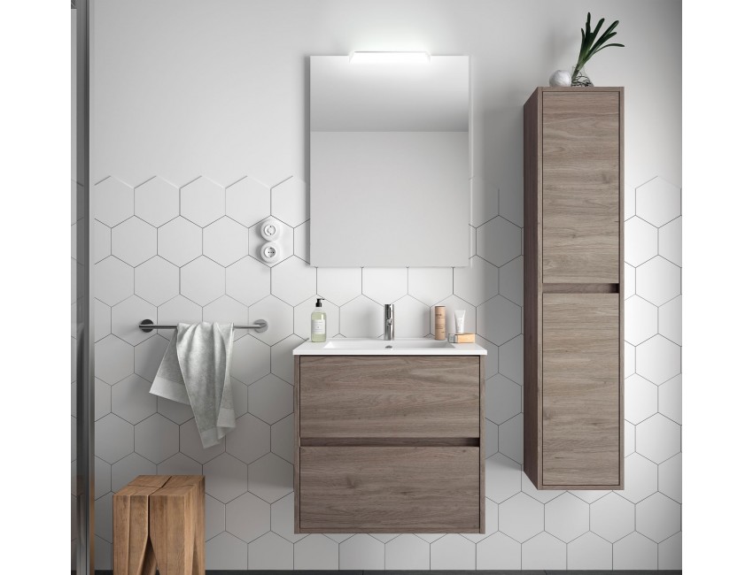 Badezimmer Badmöbel 70 cm aus Eiche eternity Holz mit Porzellan Waschtisch