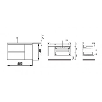 Schrankabmessungen: B 85,5 x T 46 x H 56 cm