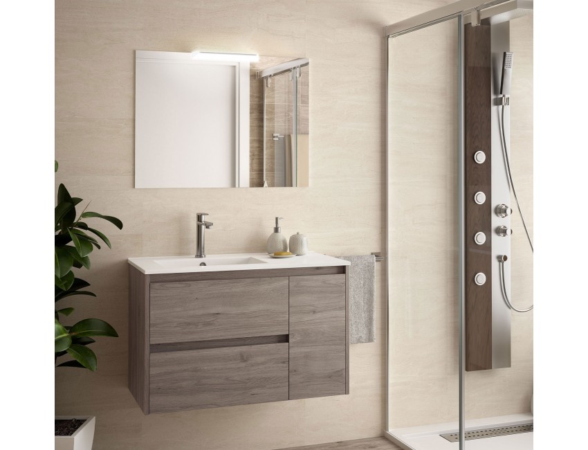 Badezimmer Badmöbel 85 cm aus Eiche eternity Holz mit Porzellan Waschtisch