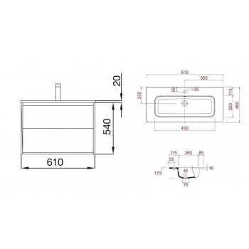 Waschtischabmessungen: B 61 x T 46 x H 1,9 cm (Badewannentiefe : 17cm)