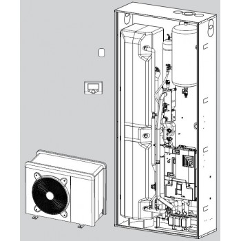 - Eingebaute Inverter-Monoblock-Luft/Wasser-Wärmepumpe zum Heizen, Kühlen und zur Warmwasserbereitung.