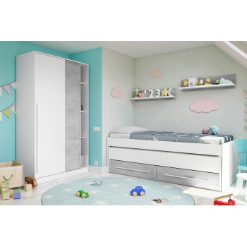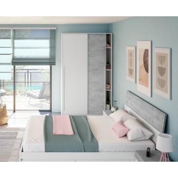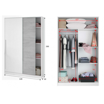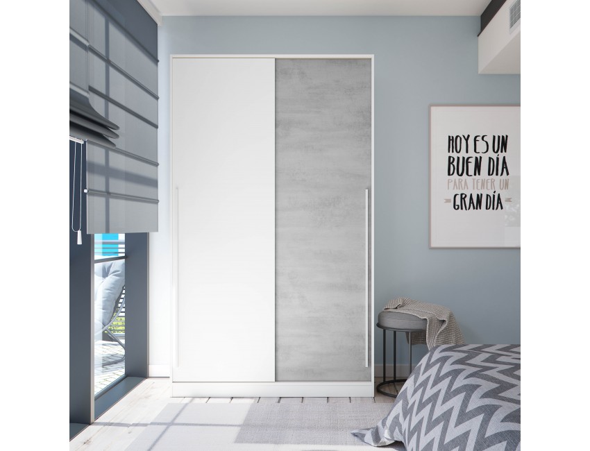 Kleiderschrank 120x200H cm Mattweiß und Beton 2 Schiebetüren