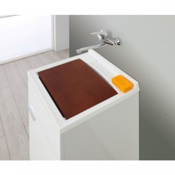 Lavatoio in nobilitato melaminico bianco lucido 18 mm, completo di vasca in resina, sifone e tavoletta multiuso fenolico verniciato.